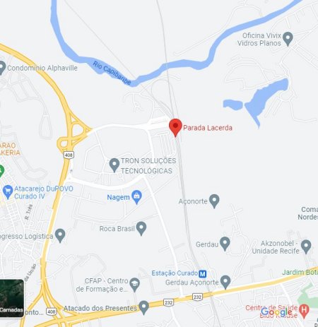 (ACIMA: Estação desativada de Parada Lacerda em 2023 , mas ainda ligada à estação Curado do metrô (Foto Google Maps).