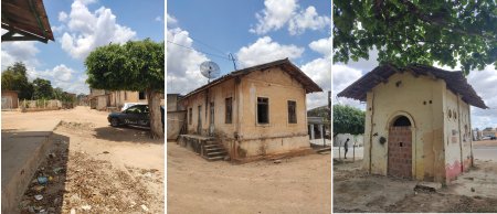 ACIMA: Casas da vila ferroviária de Pombos, no antigo pátio da estação de Pombos, em 2021 (fotos Rodrigo Henrique em 18/10/2021).