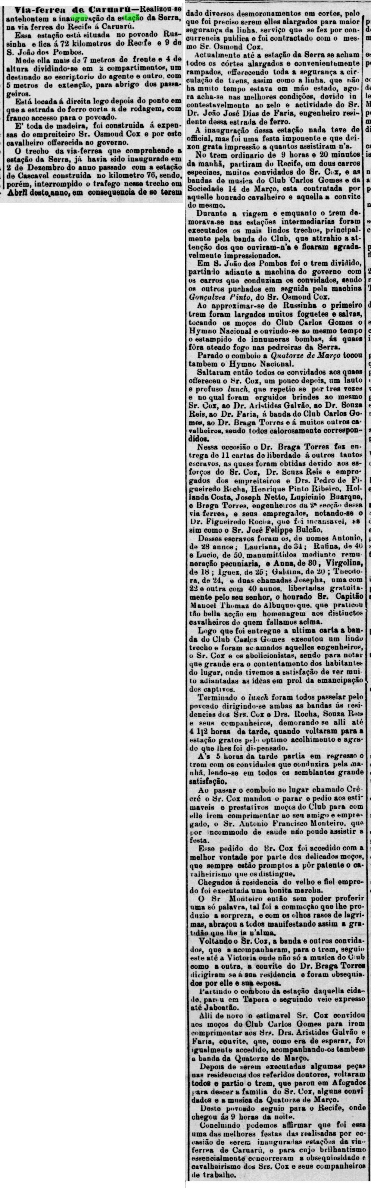 de Ferro Central de Pernambuco foi aberta em 1885, de Recife a Jaboatão,
