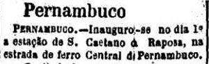 Caetano foi inaugurada em 1891, com o nome de São Caetano da Raposa (ver caixa abaixo, de 1891). O Guia Geral das Estradas de Ferro do Brasil dá como data de inauguração 1/12/1895.