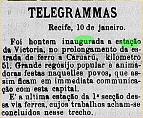 sucessivas em Tapera, Vitória de Santo Antão e Pombos. Em Vitória