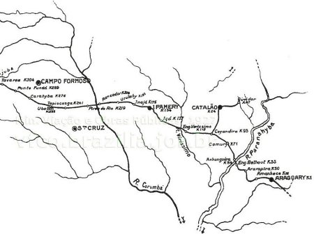 ACIMA: Mapa da linha original da E. F. Goiaz com as estações - sem data)