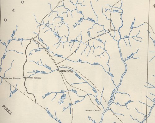 notar que a ferrovia, ao invés de passar em Campo Formoso (atual Orizona),