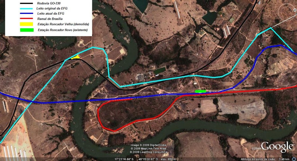 do rio Corumbá; a nova à esquerda da foto abaixo. A Roncador original ficava