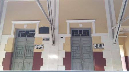 ACIMA: As portas da estação e as placas de quilometragem e altitude em 24/4/2021 (Foto)