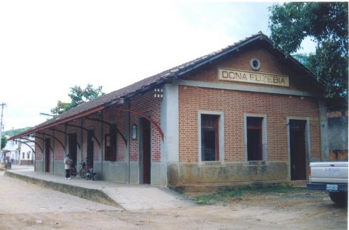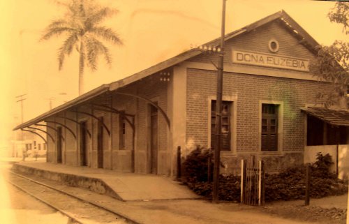 Santa Eusébia e não Dona Eusébia nos primeiros anos, entre 1879 e 1885. Publicações em pelo menos três jornais da região, entre 1879 e 1882, citam o nome da estação como sendo Santa Euzebia e carimbos em selos da época também se referem ao antigo nome. O nome da estação já aparece como Dona Euzebia em 1886. Há carimbos posteriores que já citam a estação como Dona Eusebia, como o que pode ser visto no caixa mais abaixo nesta página.