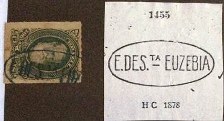 AO LADO: Carimbo postal da estação, com o nome de Santa Euzebia (reprodução do selo: Fabio Monteiro). |