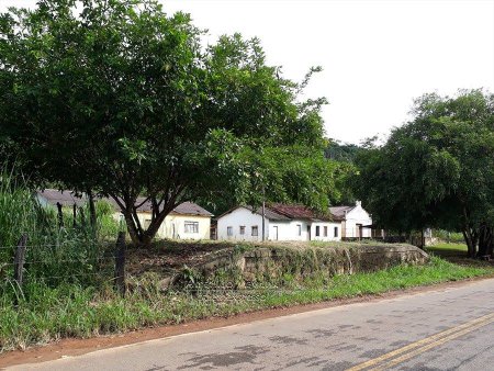 Vilarejo de Coelho Bastos, com a plataforma à esquerda,