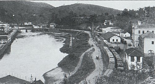 Ponte Nova. À esquerda, a estação da EFCB. À