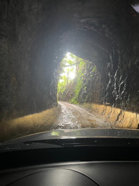 ACIMA: Onde passava a linha, próximo à estação de Paquequer, já no ramal de Sumidouro, o "túnel que chora" é um dos legados da ferrovia, hoojhe parte de uma rodovia vicinal (Foto Antonio Pastori em 6/1/2023).