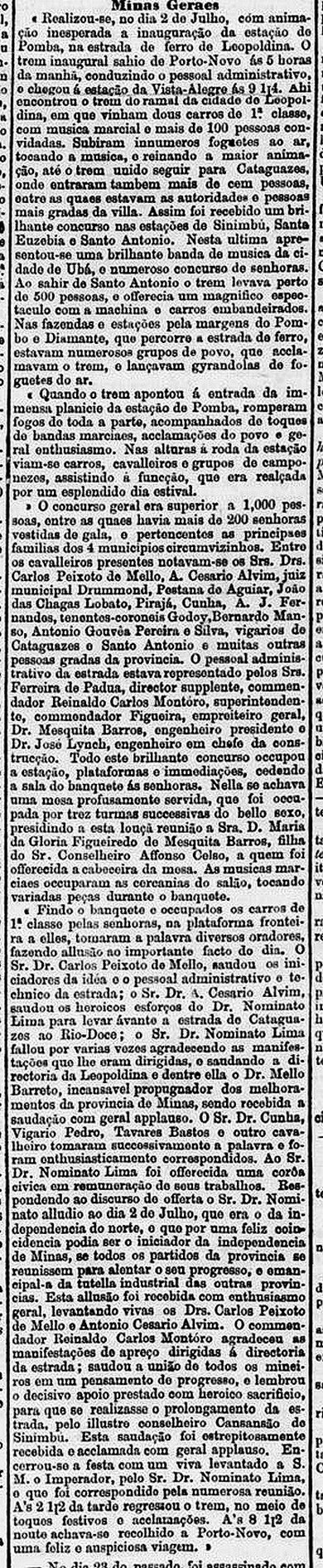 a inauguração do ramal do rio Pomba em 1/7/1886. O almoço
