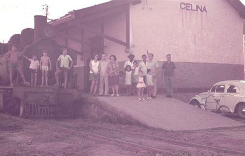 A vila de Celina nos anos 1950. No centro, ao fundo, a estação.