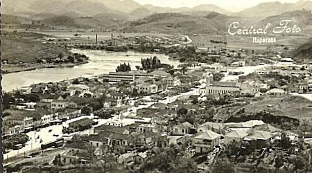 anos 1950, a estação e à esquerda na foto o rio