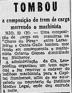 AO LADO: Acidente proximo a Cantagalo mata o maquinista (O Estado de S.