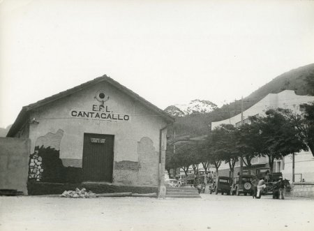 ACIMA: A estação já sem função e remendada em suas laterais em Cantagalo em 1970 (Autor desconhecido).