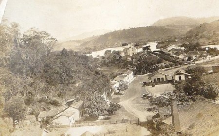 ACIMA: A cidade nos anos 1930, possivelmente. Pode ser a estação ali ao lado da rua, mas ainda antes de ser reformada (Autor desconhecido).