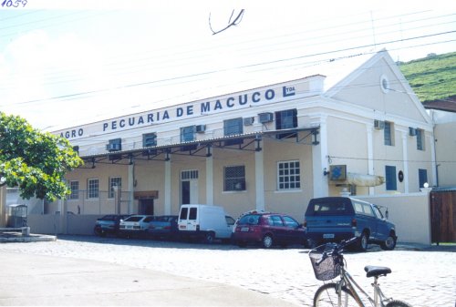 Macuco, RJ Acima, vista panorâmica da cidade de Macuco, anos 1930. Acervo Família Fellows. Cessão Pablo Freitas Abaixo, prédio da Cooperativa Agro Pecuária Regional de Macuco. Foto Gutierrez Lhamas Coelho, em 2003.