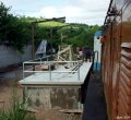 pois há um alto matagal em volta da pista de acesso à rampa da plataforma.