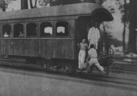no carro de primeira classe da Leopoldina em movimento nas ruas de