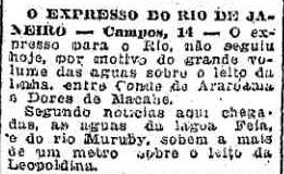 AO LADO: Mudança de nomes de estações da Leopoldina, entre as quais Entroncamento, que passou a se chamar Quissamã (não confundir com a estação do ramal de Quissamã) e depois se chamaria Conde de Araruama(O Estado de S. Paulo,
