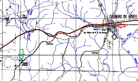 ACIMA: A parada Indaiassu - com a seta verde - em
