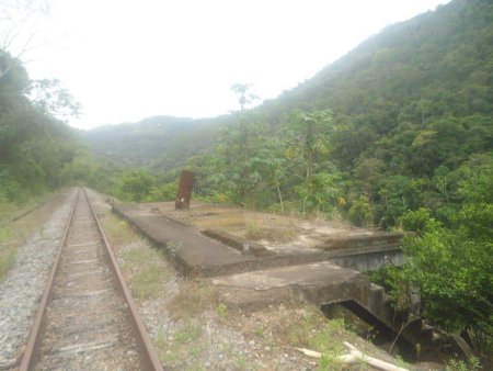 ACIMA: A parada em 2/10/2018. Notar a escadaria que levava os habitantes do povoado ao trem de passageiros