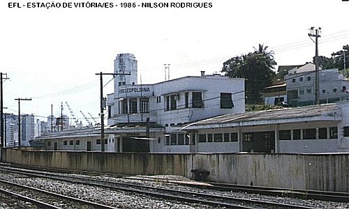 ACIMA: A estação ainda com o nome (no dístico) de Central; depois, ela se chamou Vitoria. Uma foto com este nome no distico aparece ao pé da página (Sem data - Arquivo Nacional).
