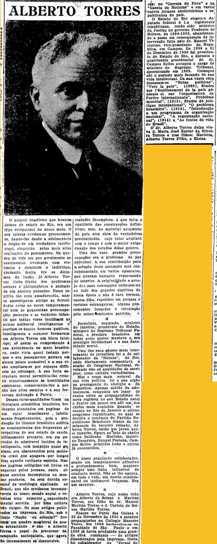 AO LADO: Morte de Alberto Torres - CLIQUE SOBRE A FOTO PARA VER A REPORTAGEM (O Estado de S. Paulo, 30/03/1917). |
