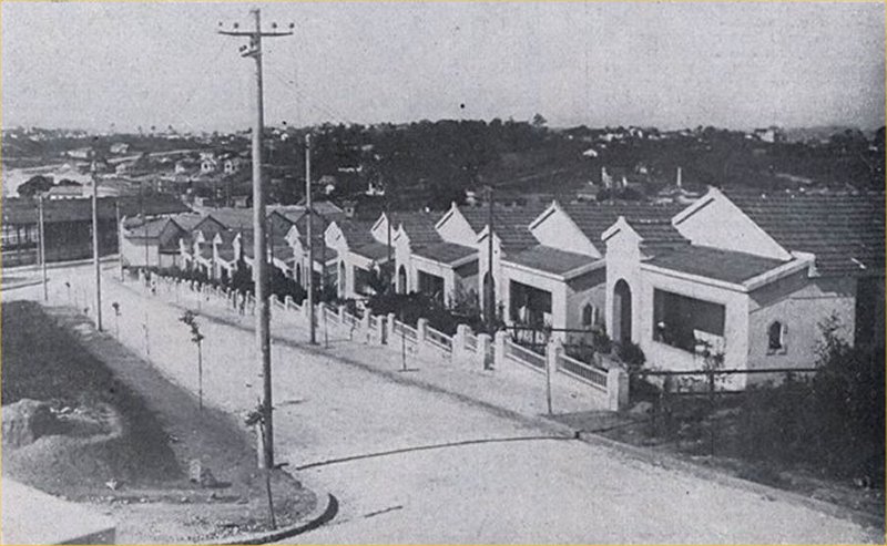 ACIMA: Estação de Bras de Pina em 1930, e rua Santo
