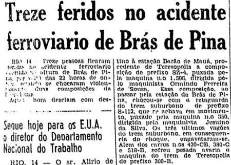 Acidente junto à estação de Bras de Pina em 1949 (Folhe da Manhã, 15/10/1949).