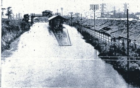 ACIMA: A estação vista de mais longe provavelmente nos anos 1960. Compare com a foto da inundação mais acima (Autor e data desconhecidos).