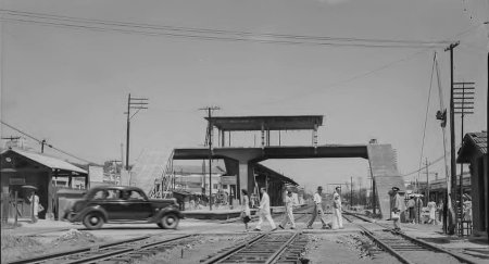 ACIMA: A estação de Olaria e a passarela, nos anos 1950 (Autor desconhecido).
