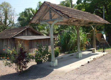 A cobertura, com telhas francesas ainda são as do tempo da ferrovia.
