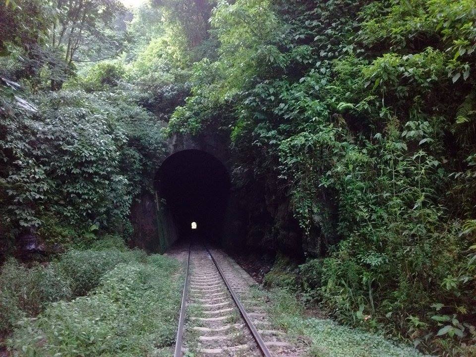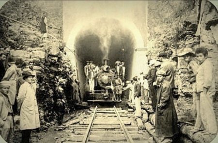 ACIMA: Inauguração do túnel ferroviário na linha em Siderópolis em 1944 (Data atribuída, três anos antes da data de inauguração da estação. (Autor desconhecido).