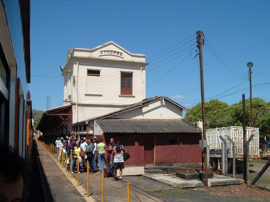 de Aimorés foi inaugurada em 1907 (Guia Geral das Estradas de Ferro do Brasil, 1960), com o nome de Natividade do (rio) Manhuaçu. Já com a estação, o então distrito tornou-se vila (município), implantada em 1917. A fotografia ao pé desta página mostra (com o nome "Natividade" claramente tendo sido um rabisco posterior na foto).