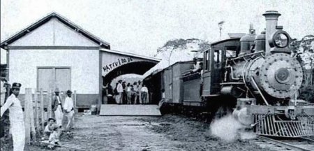 ACIMA: A estação ainda com o nome de Natividade em foto provavelmente tirada por volta de 1910 (Cessão Prof. Dr. André Simplicio Carvalho, UFMG: https://journals.openedition. org/terrabrasilis/10282;