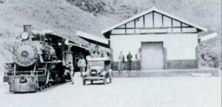 ACIMA: O primeiro prédio que existia como estação ferroviária (Foto de 1936, autor desconhecido).