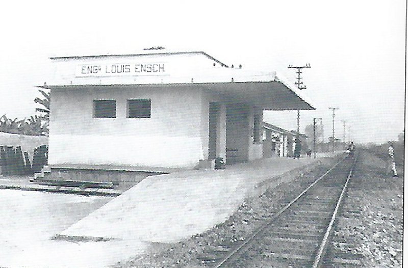 A ESTAÇÃO: A estação de Engenheiro Louis Ensch foi inaugurada em 1942 (Guia Geral das Estradas de Ferro do Brasil, 1960). Ela foi uma sucessora da estação de Capim, que existia nos horarios de trens nos Guias Levi desde pelo menos julho de 1947.