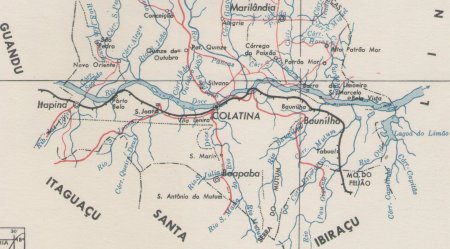 ACIMA: Mapa mostra o municipio de Colatina (parcial) e suas estações, entre as quais, a oeste, a de Santa Joana, nos anos 1950 - CLIQUE SOBRE A FIGURA PARA VÊ-LA EM TAMANHO MAIOR (IBGE: Enciclopedia dos Municipios Brasileiros, 1960).