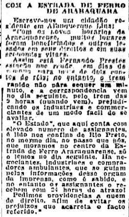 AO LADO: O trem não para e a cidade somente lê o jornal no dia seguinte (O Estado de S. Paulo, 23/12/1922). |