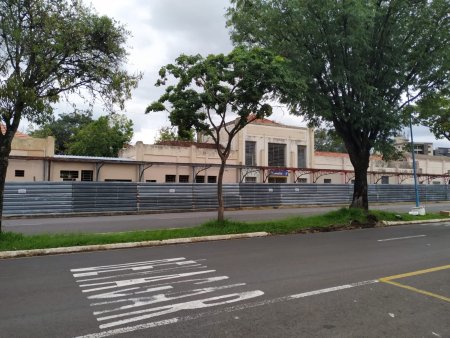ACIMA: A estação de Franca, cercada para obras, em 30 de dezembro de 2022 (Foto Abimael Simões).