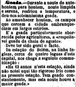 AO LADO: Geada na estação de Belem (O A Provincia de S. Paulo,