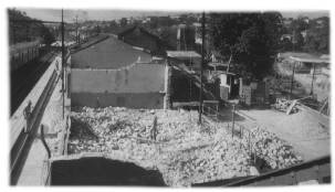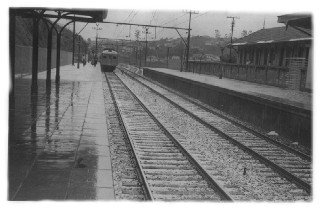 ACIMA: Mapa, cerca de 1950, mostrando a estação,