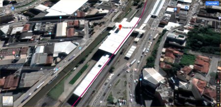 ACIMA: Cidade, viaduto rodoviário e a nova estação, todos inundados em 2016. A estação velha, já desativada, está à direita e não aparece na fotografia (O Estado de S. Paulo, 11/3/2016).
