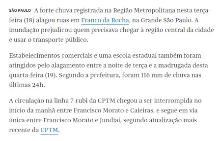 ACIMA: Notícia do jornal Folha de S. Paulo de 18/04/2023 mostra alagamento das linhas da CPTM na cidade e estação de Franco da Rocha no dia anterior.
