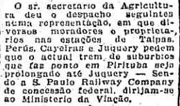 AO LADO: Juquery quer mais um trem, pode até ser misto! (O Estado de S. Paulo, 30/7/1890). |