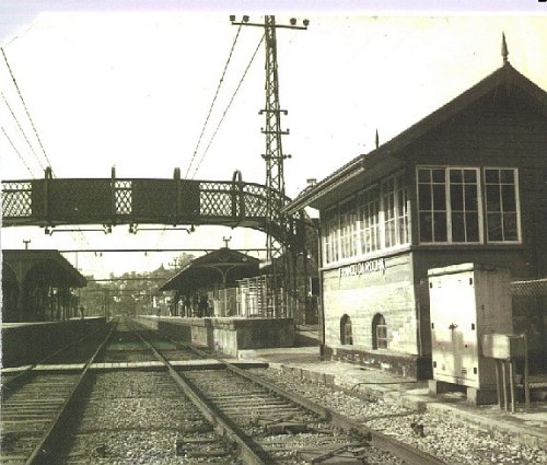 ACIMA: A estação e a passarela típica da SPR em foto dos anos 1970 (Foto B. M. Kühl).