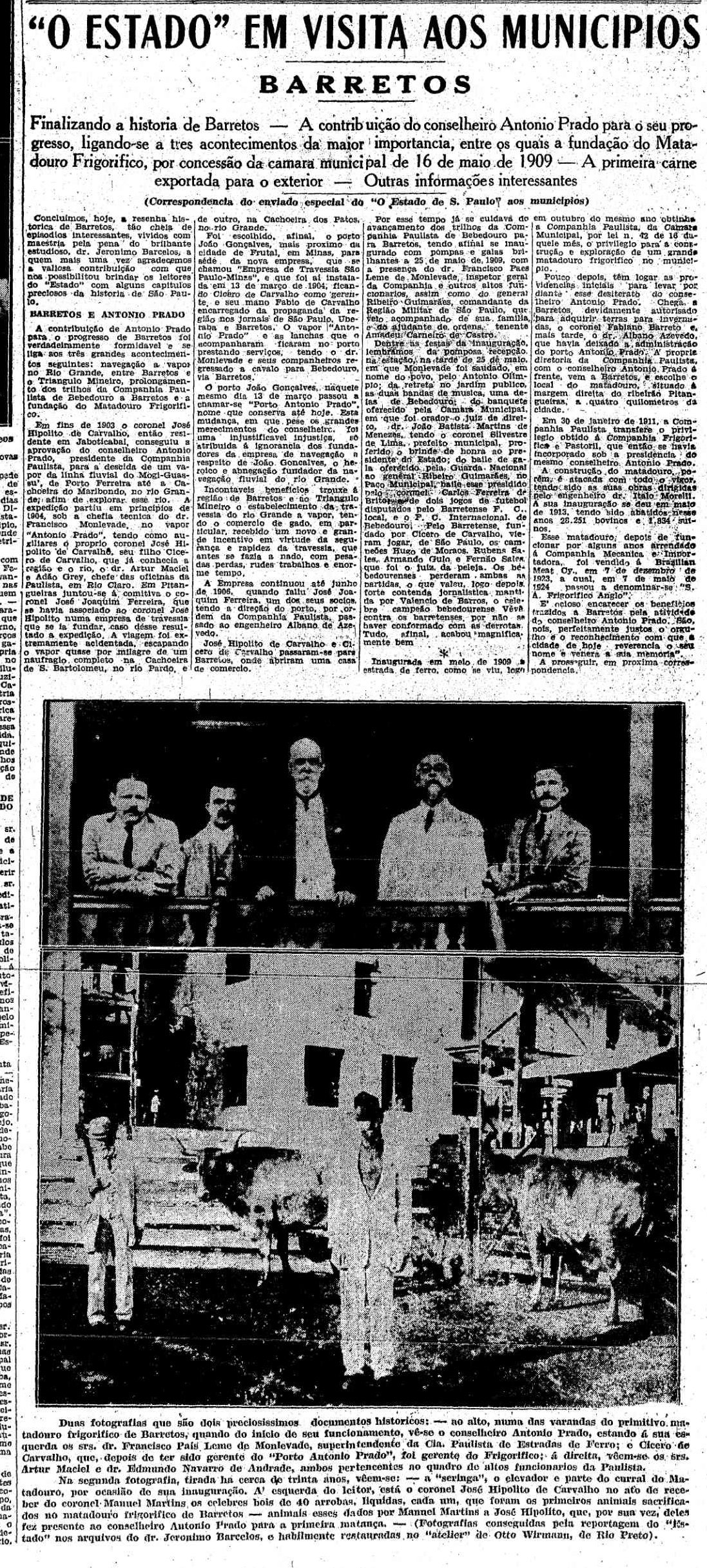 ACIMA: A história do Frigorífico escrita em 1941, quando estação e fábrica ainda tinham grande atividade (CLIQUE SOBRE A FIGURA PARA VER A REPORTAGEM TODA) (O Estado de S. Paulo, 23/7/1941).