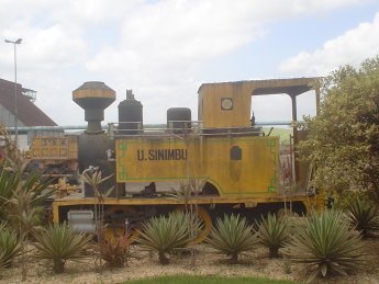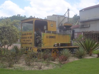 Fica hoje situada no município alagoano de Jequiá da Praia. No mapa do IBGE da Enciclopédia dos Municípios Brasileiros de 1958 o município de Jequiá da Praia ainda fazia parte (a emancipação foi em 1998) do município de São Miguel dos Campos, mas ali não é mostrada nem a localização da usina em si nem a sua ferrovia. Não consegui a data de implantação da ferrovia, porém, uma inscrição na parte anterior da locomotiva hoje exposta no pátio da usina (uma Orenstein Kappel alemã?) afirma que "adquirido em 1934, desativada em 1968, 34 anos a serviço do desenvolvimento da Sinimbu" é uma indicação do tempo de atividade da locomotiva, não da ferrovia, pois em fotos de 1922 (abaixo), as linhas já existiam. Poderíamos assumir a desativação da ferrovia como tendo sido 1968? Há uma outra locomotiva que está hoje exposta (e bem conservada) na Usina Tiúma, em São Lourenço da Mata, Pernambuco, uma Baldwin 2-6-0, americana, de bitola 60 cm, que rodou na ferrovia da usina Cansanção de Sinimbu. Teria sido esta a bitola da ferrovia da Usina Cansanção de Sinimbu ou a locomotiva, que supostamente não rodou na Usina Tiúma, teria tido sua bitola reduzida? |
