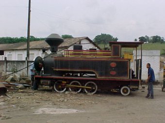 havia pelo menos 3 locomotivas diesel GE de 45 ton. A ferrovia teria fechado por questões de custo - tinham de manter a linha e o material o ano todo para somente trabalhar 3 meses - e logística - os pontos de corte ficaram distantes da via férrea. Sobraram 5 locomotivas, 3 Kerr-Stuart n°s 1, 2 e 4 e 2 GE 45-ton ex-Porto do Recife. A loco n° 2 foi posta no museu da usina e uma das outras duas vaporosas teria sido prometida para um museu na Inglaterra através dos esforços do diretor do Conselho Britânico em Recife; agora a usina está esperando que o museu se organize para repatriar a locomotiva. Na sexta-feira antes do ano novo de 2003 So pátio frontal da usina estava sendo preparado para a festa que haveria na véspera uma "última viagem" oficial com a loco n°4 e algumas galeras de cana, para o pessoal poder andar, com retorno previsto em tempo para uma salva de apitos junto com a sirene da usina e fogos de artifício. A usina era, em 2003, uma das poucas usinas no Brasil que ainda possuía vila operária com supermercado, padaria, correio, hospital, cartório, etc. dentro da propriedade, empregando 900 funcionários na parte industrial e 4000 na agrícola. Além disso, foi a última usina no Brasil a usar ferrovia para o transporte de cana. (Todas as informações: Nicholas Burmann, em janeiro de 2003) |